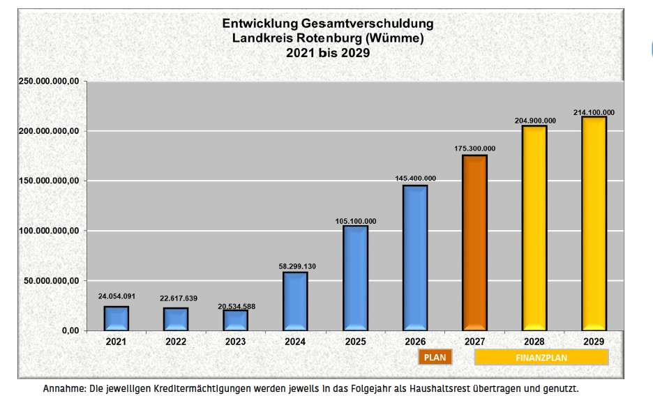 Vor dem Hintergrund, dass der Landkreis sich durch umfangreiche Baumaßnahmen in Rotenburg etc mittlerweile hoch verschuldet hat, ist es eigentlich eine Farce, dass ausgerechnet die Gemeinde aus der am meisten Geld kommt in erster Linie leiden soll.